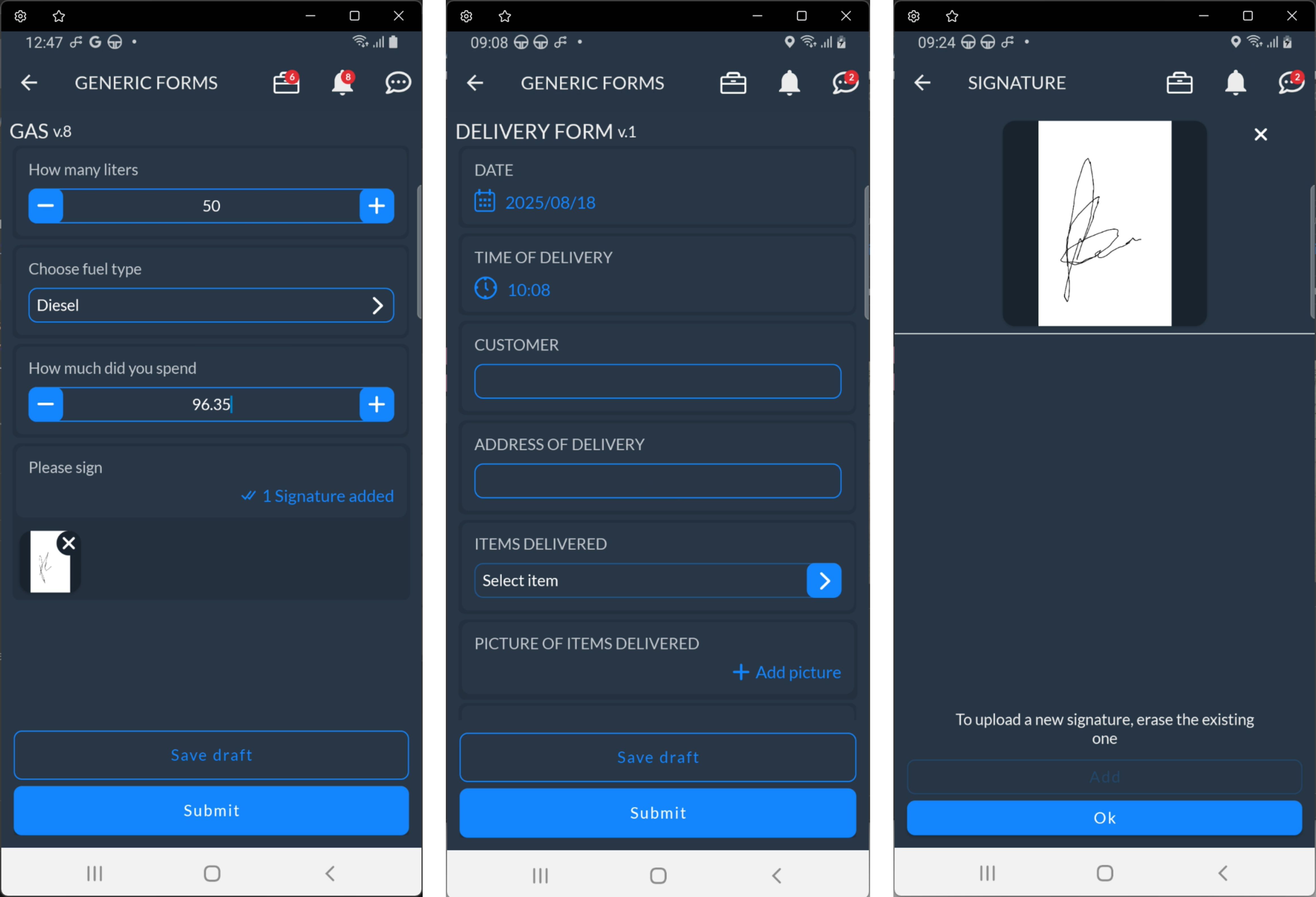 In fact, the Mobile workforce management module’s flexibility allows you to define the exact workflows expected for each type of task, as well as the exact forms that need to be filled in by your drivers in such diverse circumstances as deliveries, refueling, waiting periods and so forth. You can configure it to meet your company’s specific needs.