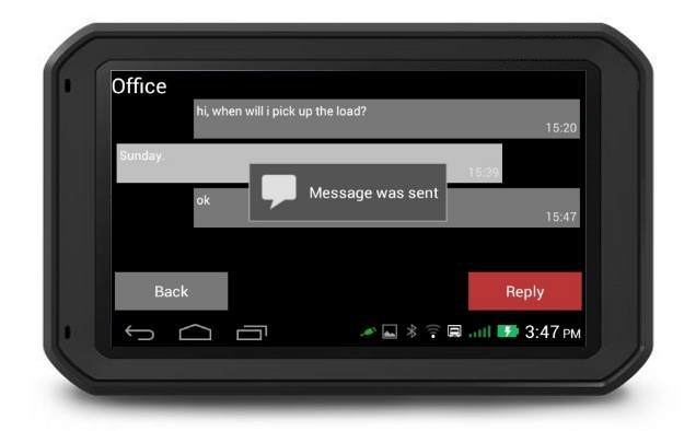 Incoming text messages, jobs or alerts are immediately displayed on the tablet.