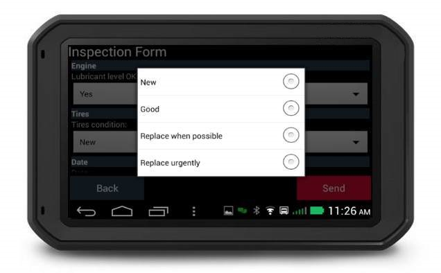 A very user-friendly interface on the tablet guides drivers to progress from one task stage to the next. In real time, this information is available in Frotcom. Dispatchers know the exact stage of each job at any point in time.
