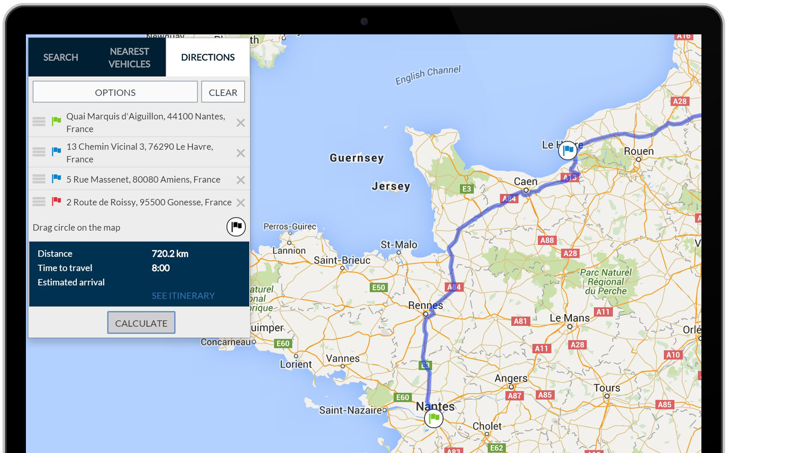 Urmărește executarea rutei pe hartă - Poți vedea nu doar unde au fost vehiculele, ci și rutele pe care trebuie să le urmeze până la destinații.